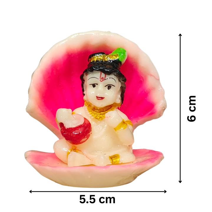 Depicting Lord Krishna as a child (Bal Gopal) seated gracefully inside a decorative seashell (Seep), this idol symbolizes purity, prosperity, and happiness.