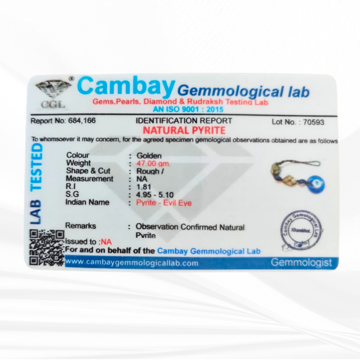 दुर्घटनाओं से बचने के लिए ईवल आई को कार के अंदर लगाया जाता है और साथ में पायराइट का स्टोन भी लगाते है सुख और समृद्धि पाने के लिए