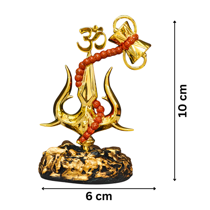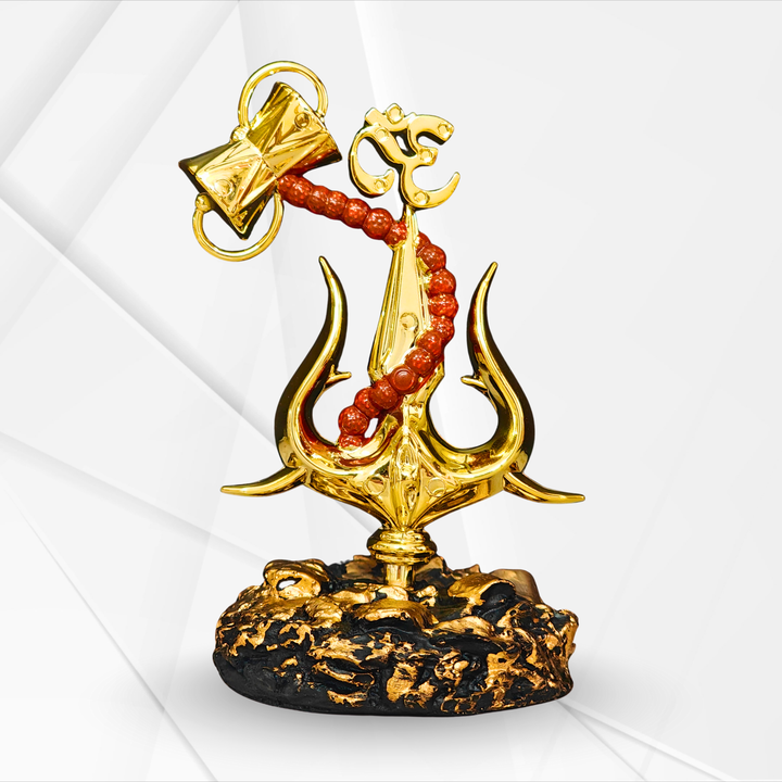 Golden Shiva Trishul with Damru & Om Showpiece for Home, Office & Spiritual Gifting