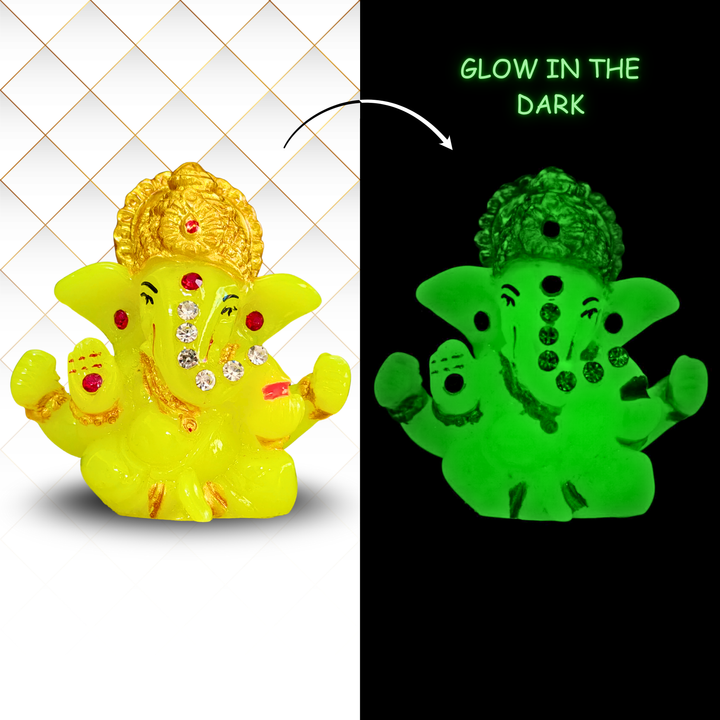 Glow-in-the-Dark Ganesha Idol – A unique design that radiates light in darkness, symbolizing the removal of negativity and spreading positivity.