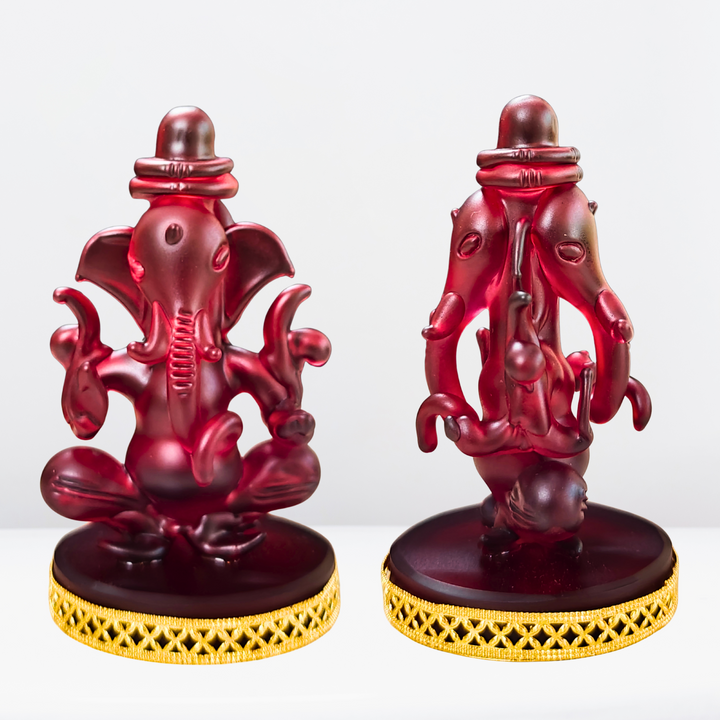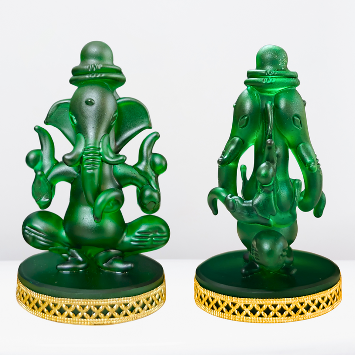 Glass 2 Face Ganesha Idol | Decorative Murti for Home, Office & Car Dashboard